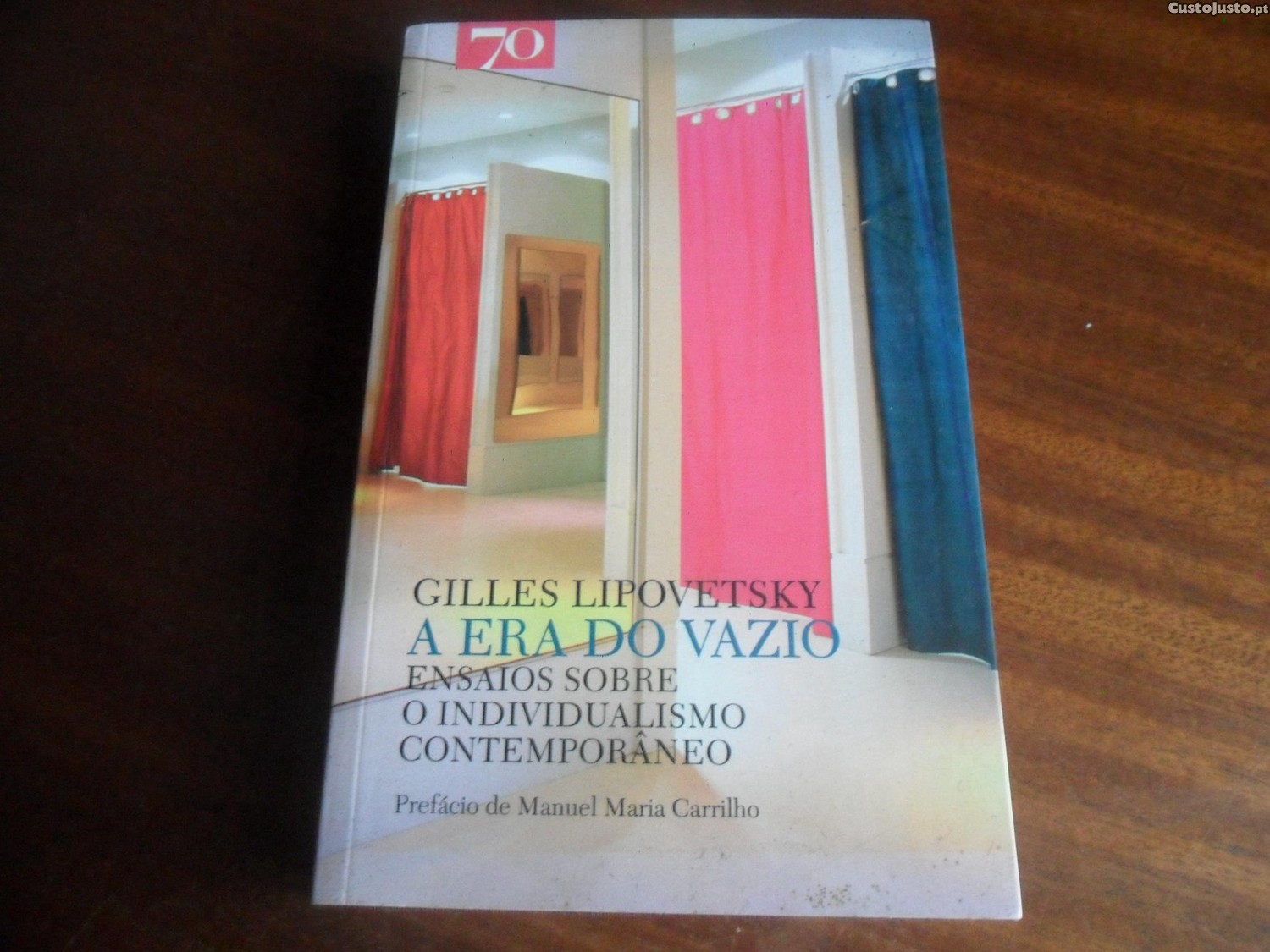 Em A Era do Vazio. Ensaios sobre o Individualismo Contemporâneo, obra publicada inicialmente em 1983 e que ganhou contornos de clássico, Gilles Lipovetsky analisa a sociedade dita pós-moderna e disserta sobre as novas atitudes do indivíduo que se manifestam no mundo ocidental, atitudes essas que, segundo ele, traduzem uma perda de importância da esfera pública, bem como das suas instituições colectivas (sociais e políticas), que vai cedendo perante a emergência do individualismo de tipo narcísico e hedonista, naquilo que seria uma «segunda revolução individualista». Este texto seria o ponto de partida para um corpus, fecundo, que se tem vindo a debruçar sobre temas como a hipermodernidade, o individualismo, o consumo, a globalização e o indivíduo, a estética capitalista. Esta nova edição integra o Posfácio escrito pelo autor para a edição francesa, em 1993, bem como um Prefácio de Manuel Maria Carrilho, que há três décadas estuda e acompanha a obra de Lipovetsky.