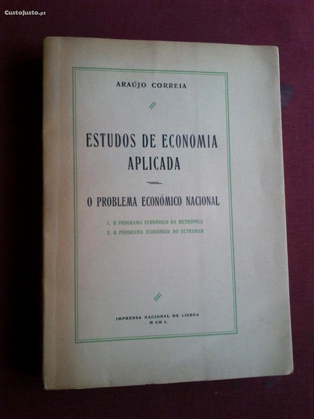Araújo Correia-Estudos de Economia Aplicada:O problema Económico Nacional (1.O Programa Económico na Metrópole - 2.O Programa Económico no Ultramar)-Imprensa Nacional de Lisboa-MCML