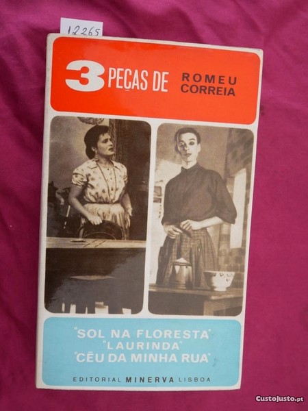 N 12266 3 Peças de teatro de Romeu Correia. Sol na Floresta; Laurinda e Céu da minha Rua. 1 Edição. Editorial Minerva. Autografado pelo autor com dedicatória. 1968. 340 páginas. 17,5x10,5cm.