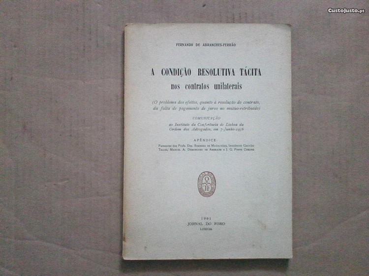 Preço: 7 €A condição resolutiva tácita nos contratos unilaterais