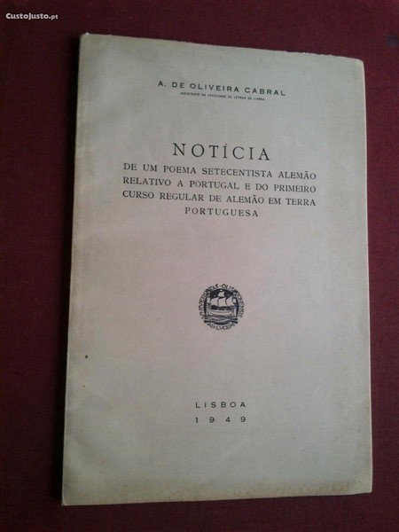 A. de Oliveira Cabral-Notícia de Um Poema Setecentista Alemão Relativo a Portugal e do Primeiro Curso Regular de Alemão Em Terra Portuguesa-Lisboa-1949