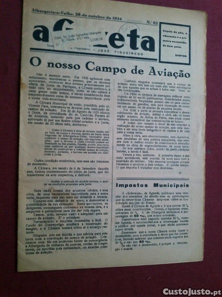 Preço: 5 €A Gazeta-Albergaria-a-Velha-Ano I (Único)-N.º 62-1934