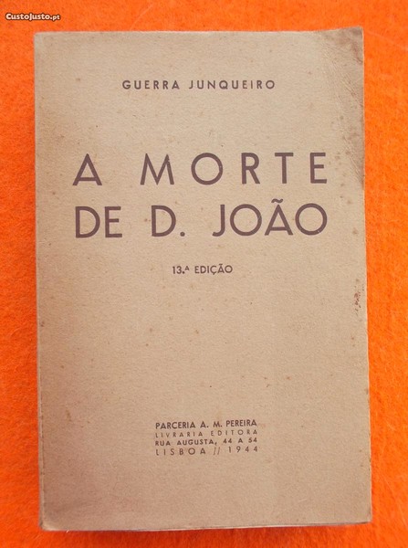 Livro de Guerra Junqueiro - A Morte de D. João . Editora: Parceria António Maria Pereira 13 edição de 1943 com 346 páginas de capa mole . Livro em bom estado com alguns picos de acidez . Inclui portes em correio editorial .