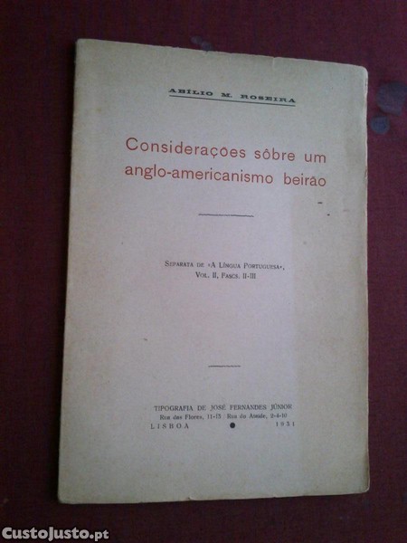 Abílio M. Roseira-Considerações Sobre Um Anglo-Americanismo Beirão (Separata de «A Língua Portuguesa», Vol. II, Fasc. II-III)-Tipografia de José Fernandes Júnior-Lisboa-1931