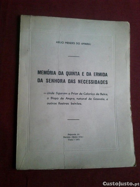Abílio Mendes do Amaral-Memória da Quinta e da Ermida da Senhora das Necessidades,Onde Figuram o Prior de Celorico da Beira,O Bispo de Angra,Natural de Gouveia,e Outros Ilustres Beirões-Separata da Revista «Beira Alta»-Viseu-1973