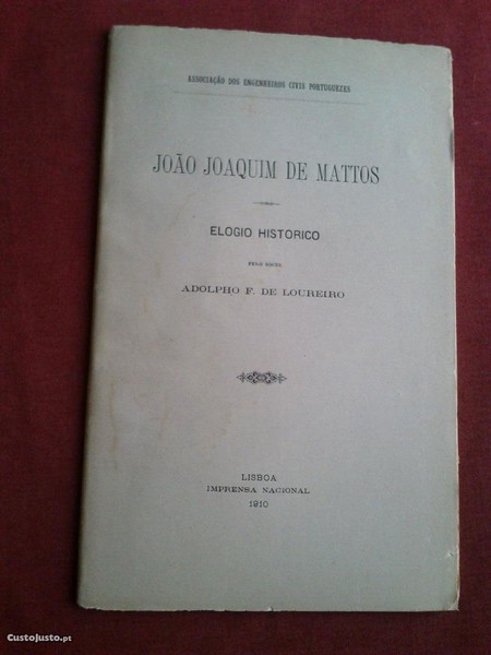 Associação dos Engenheiros Civis Portuguezes-João Joaquim de Mattos-Elogio Histórico Pelo Sócio Adolpho F. de Loureiro-Lisboa-Imprensa Nacional-1910