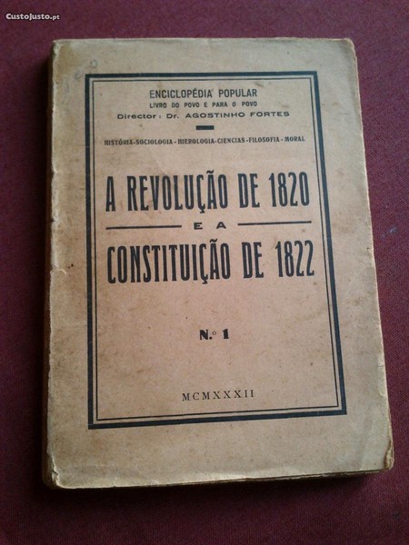 Enciclopédia Popular N.º 1 (História-Sociologia-Hierologia-Ciências-Filosofia-Moral)-A Revolução de 1820 e a Constituição de 1822 por Agostinho Fortes (Memória de Vulgarização)-Lisboa-1932