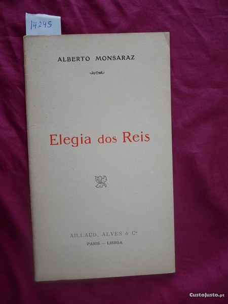N 14245 Alberto Monsaraz. Elegia dos Reis. Paris, 1910. In-4 de 11 págs. Notável poema escrito em Outubro de 1910, sob o corpo ainda exangue da quase milenária Monarquia Portuguesa.
