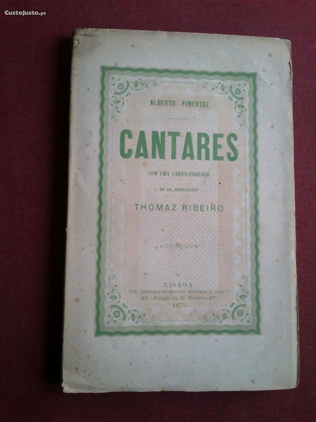 Alberto Pimentel-Cantares-Com uma Carta-Prólogo do Sr. Conselheiro Thomaz Ribeiro-Lisboa-Livraria Editora de Mattos Moreira & Compª-1875
