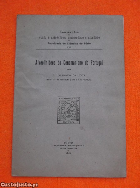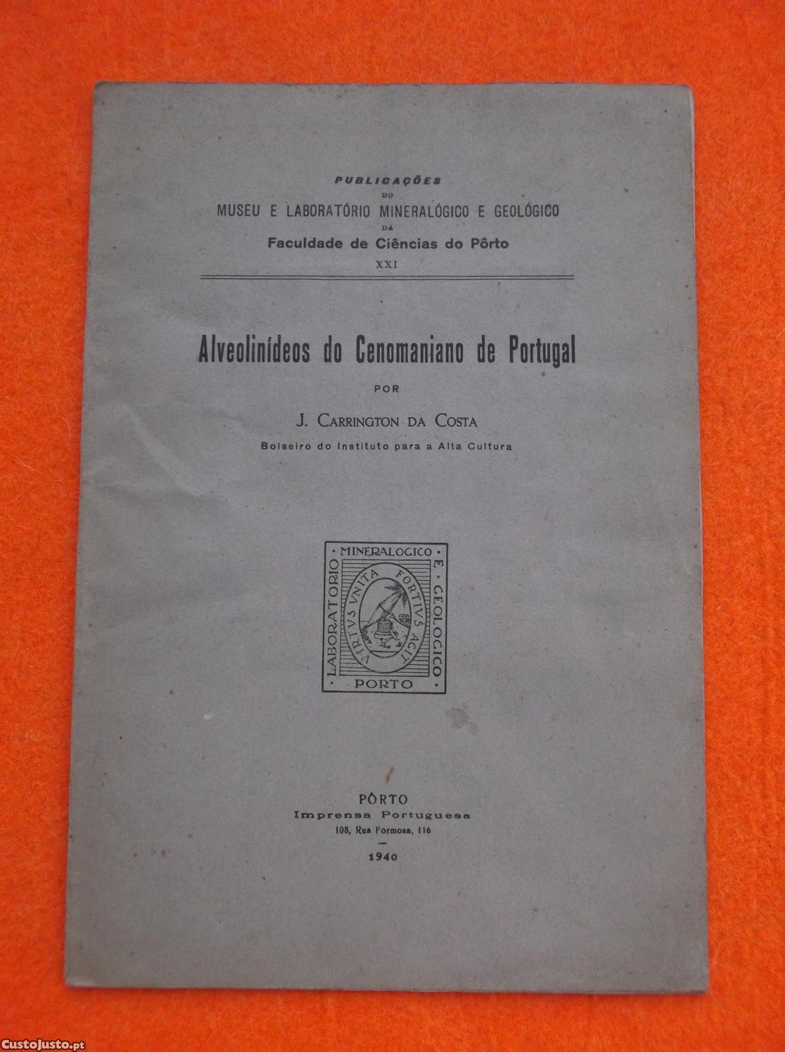 Livro do J.Carrington da Costa - Alveolinídeos Do Cenomaniano De Portugal . Por... Bolseiro do Instituto para a Alta Cultura. Publicações do Museu e Laboratório Mineralógico e Geológico da Faculdade de Ciências do Pôrto. Imprensa Portuguesa. Pôrto. 1940 com 14 páginas de capa mole 23x16 cm . Livro em bom estado . Inclui portes em correio editorial .