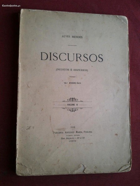 Preço: 8 €Alves Mendes-Discursos (Inéditos-Dispersos)-Vol. II-1916