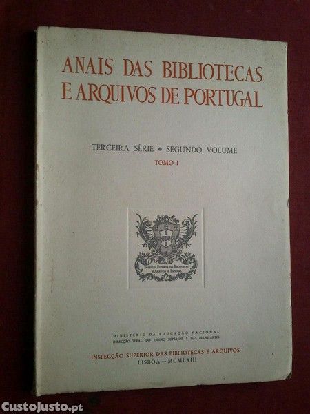 Preço: 15 €Anais das Bibliotecas e Arquivos de Portugal-3.ª Série-II Volume-Tomo I-1963