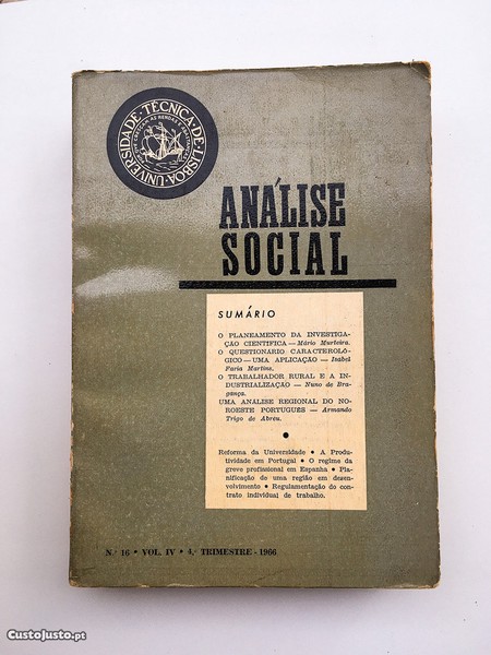 Reforma da Universidade. A Produtividade em Portugal. O Regime da Greve Profissional em Espanha. Planificação de uma Região em Desenvolvimento. Regulamentação do Contrato Individual de Trabalho.