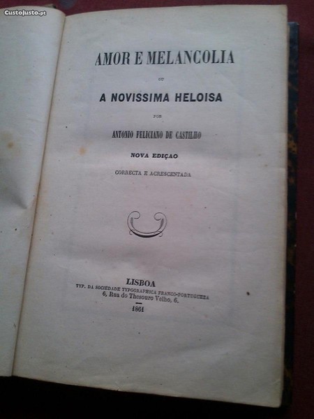 Amor e Melancolia ou a Novíssima Heloísa por António Feliciano de Castilho-Nova Edição Correcta e Acrescentada-Lisboa-Typ. da Sociedade Typographica Franco-Portugueza-1861