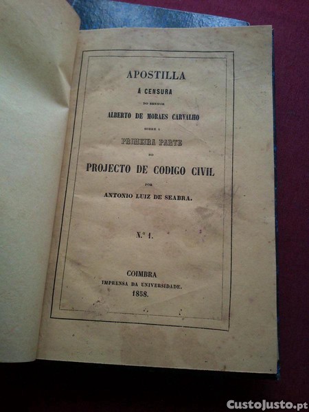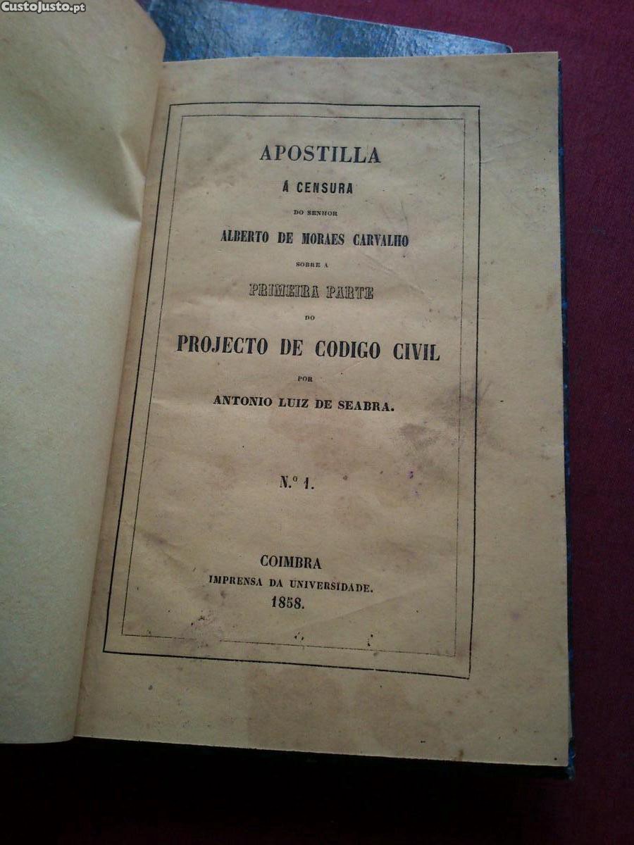 Apostilla Á Censura Do Senhor Alberto De Moraes Carvalho Sobre A Primeira Parte Do Projecto De Código Civil Por António Luiz De Seabra (3 Números-completo)-Coimbra-Imprensa Da Universidade-1858