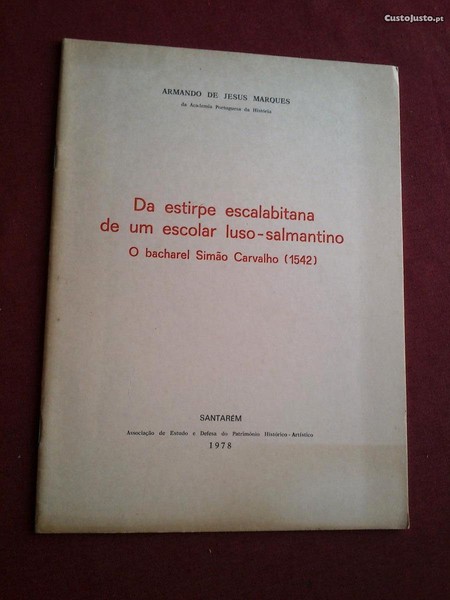 Armando de Jesus Marques-Da Estirpe Escalabitana de Um Escolar Luso-Salmantino:O Bacharel Simão Carvalho (1542)-Santarém-Associação de Estudo e Defesa do Património Histórico-Artístico-1978