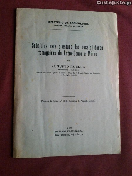 Ministério da Agricultura (Estação Agrária do Porto)-Subsídios Para o Estudo das Possibilidades Forrageiras Entre-Douro e Minho por Augusto Ruella (Separata do Folheto N.º 18 da Campanha de Produção Agrícola)-Imprensa Portuguesa-Porto-1936