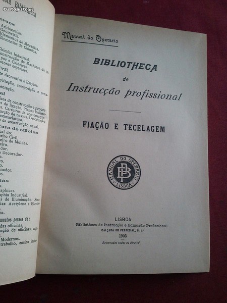 Manual Do Operário-Biblioteca de Instrução Profissional-Fiação e Tecelagem-Bibliotheca de Instrução e Educação Profissional-Lisboa-1905