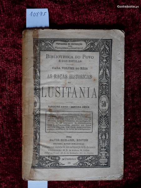 N 10895 - Bibliotheca do Povo e das Escolas. David Corazzi Editor. As Raças Históricas da Lusitânia. Edição 1893, com 63 páginas. Restauro antigo na lombada.