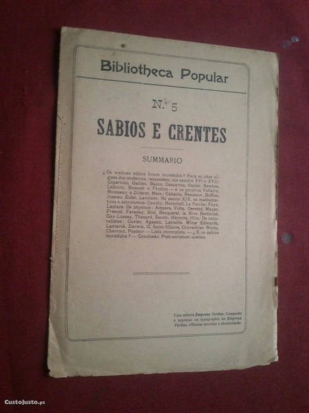 Bibliotheca Popular-N.º 5-Sábios e Crentes-Casa Editora Empresa Veritas-Composto e Impresso na Typographia da Empresa Veritas-s/d