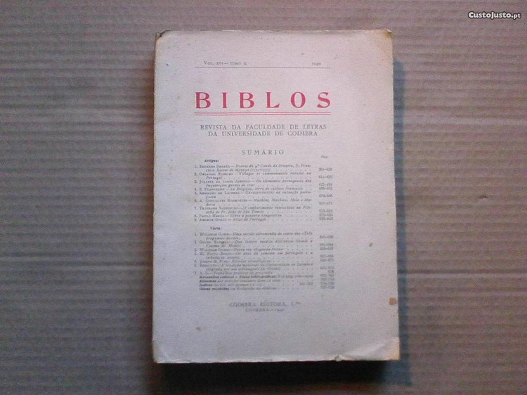 Preço: 30 €Biblos Univ. de Coimbra Vol XVI 1940