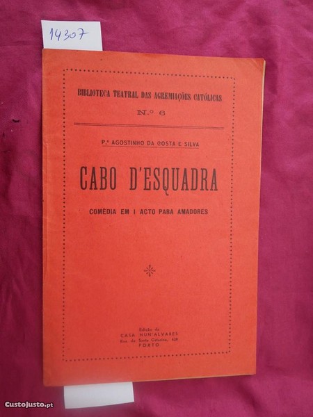 N 14307 Cabo dEsquadra. Padre Agostinho da Costa e Silva. Comédia em um acto para Amadores. Edição da Casa NunAlvares Porto. 1941. 15 pgs. 12x18cm. Falta contracapa. Muito RARO