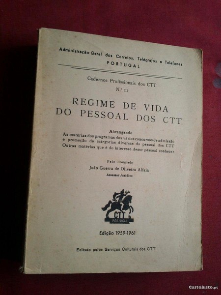 Administração-Geral dos Correios,Telégrafos e Telefones (Portugal)-Cadernos Profissionais dos CTT N.º 11-Regime de Vida do Pessoal dos CTT-Abragendo as Matérias dos Programas dos Vários Concursos de Admissão e Promoção de Categorias Diversas do Pessoal dos CTT/Outras Matérias Que é do Interesse Desse Pessoal Conhecer Pelo Licenciado João Guerra de Oliveira Alfaia-Edição 1959/1961-Editado Pelos Serviços Culturais dos CTT