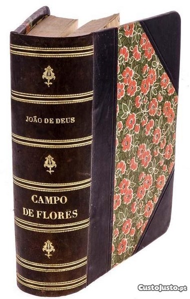CAMPOS DE FLORES - João de Deus. Ano 1896. Poesias Lyricas Completas Coordenadas sobre as vistas do Auctor por Theophilo Braga - Ne Varieteur, Lisboa - Imprensa Nacional. 2 Volumes num só tomo. Belíssima encadernação em meia francesa de carneira com decoração com flores e dourados na lombada. Muito curioso.