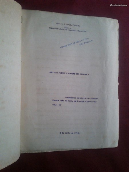 Carlos D'Arruda Furtado (Médico Inspector-Chefe de Sanidade Terrestre)-Que Haja Flores e Plantas nas Cidades! (Conferência Proferida no Jardim-Escola João de Deus,na Avenida Álvares Cabral,em 3 de Junho de 1943)