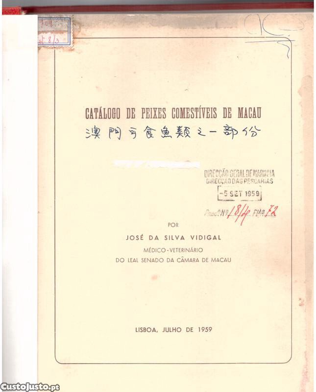 O livro Catálogo de Peixes Comestíveis de Macau, da autoria de José da Silva Vidigal, é uma obra que apresenta uma compilação detalhada de espécies de peixes comestíveis encontrados na região de Macau, abordando as suas características, habitats e relevância gastronómica. O foco do livro centra-se na identificação e descrição destes peixes, contribuindo para o conhecimento da biodiversidade marinha local e da sua importância na cultura alimentar de Macau, foi editado pela Livraria Seng Kwong.