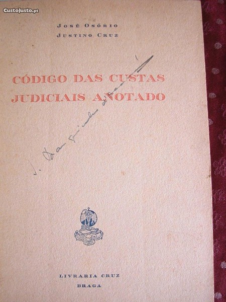 N 7793 - Código das Custas Judiciais Anotado. José Osório e Justino Cruz. Livraria Cruz 1940. Encadernado , em bom estado. 182 Páginas.