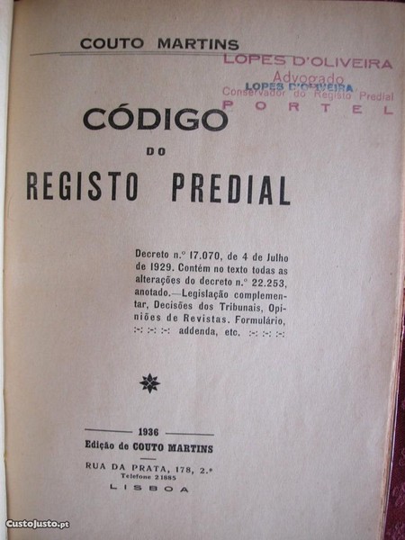 Preço: 22 €Código do Registo Predial. Couto Martins 1936