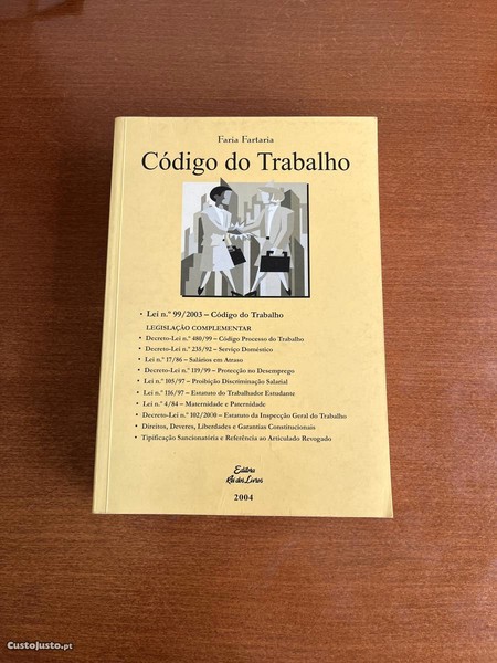 Vendo livro 'Código do Trabalho', de Faria Fartaria, ano 2004 e da Editora Rei dos Livros em bom estado.
