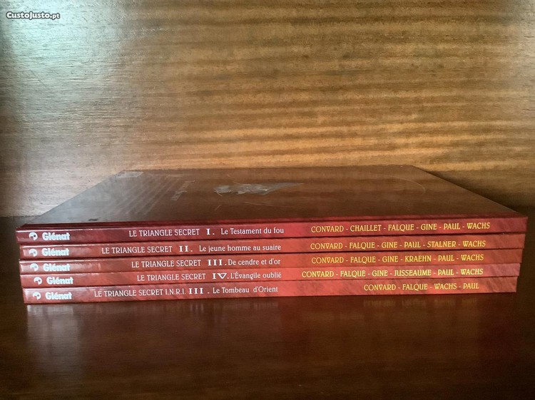 Coleção: La Loge Noire. Editor: GLENAT. Idioma: Francês - Le Triangle Secret T.1 - Le Testament Du Fou de Denis Falque e Didier Convard, 2000 - Le Triangle Secret T.2 - Le Jeune Homme Au Suaire de André Juillard, Paul , Pierre Wachs, Eric Stalner, Denis Falque e Didier Convard, 2000 - Le Triangle Secret T.3 - De Cendre Et D'Or de André Juillard, Paul , Pierre Wachs, Jean-Charles Kraehn, Denis Falque e Didier Convard, 2001 - Le Triangle Secret T.4 - L'Évangile Oublié de Didier Convard, Wachs , Jusseaume e Denis Falque, 2001 - Le Triangle Secret - I.N.R.I. T.3 - Le Tombeau D'Orient de Paul, Pierre Wachs, Denis Falque e Didier Convard, 2006 Livros Novos. Cada Livro 9EUR. Dois livros 17EUR