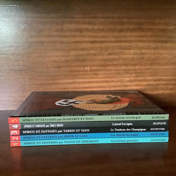 Livros da Coleção Tout Public. Une Aventure De Spirou Et Fantasio. Editor DUPUIS. Idioma: Francês T.1 - Les Géants Pétrifiés de Yoann e Vehlmann T.2 - Les Marais Du Temps de Frank Le Gall T.4 - Le Journal D'Un Ingénu de Emile Bravo T.5 Le Groom Vert-De-Gris de Yann Schwartz Livros Novos. Cada volume 8EUR. Lote de dois volumes 15EUR.
