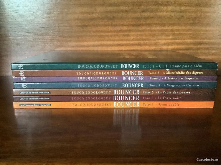 Coleção Bouncer. Editor: HUMANOIDES ASSOCIES. Idioma: Francês T.5 - La Proie Des Louves de Boucq e Jodorowsky, 2006 T.6 - La Veuve Noire de Alexandro Jodorowsky e François Boucq, 2008 T.7 Coeur Double de Beltran e Jodorowsky, 2009 Livros Novos. Cada Livro 12EUR. Conjunto dos 3 livros 33EUR.