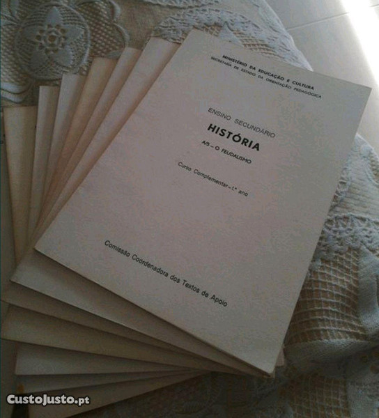 Conjunto de 15 livros, sendo do ensino secundário do primeiro e segundo Ano do Curso Complementar dos liceus, com edição do Ministério da Educação e Cultura, secretaria de estado da orientação pedagógica. Comissão Coordenadora dos Textos de Apoio e da iniciação na Matemática.