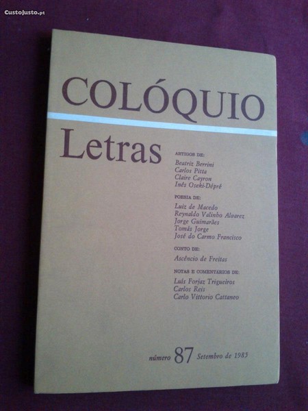 Preço: 8 €Colóquio Letras-Número 87-Setembro 1985