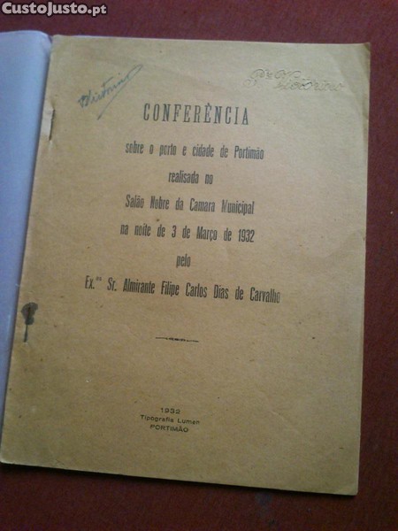 Conferência Sobre o Porto e Cidade de Portimão Realisado no Salão Nobre da Câmara Municipal na Noite de 3 de Março de 1932 Pelo Ex.mo Sr. Almirante Filipe Carlos Dias de Carvalho-Tipografia Lumen-Portimão-1932
