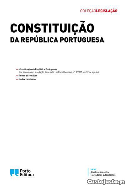 Esta edição da Constituição da República Portuguesa apresenta, como não poderia deixar de ser, o texto adotado pela Lei Constitucional n. 1/82, de 30 de setembro, devidamente atualizado com as alterações introduzidas até à sétima revisão constitucional, conforme decorre da publicação da Lei Constitucional n. 1/2005, de 12 de agosto.