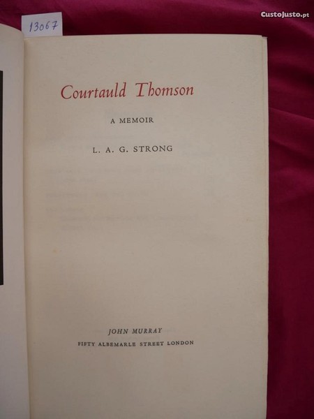Preço: 75 €Courtauld Thomson. A Memoir L. A. G. Strong. John