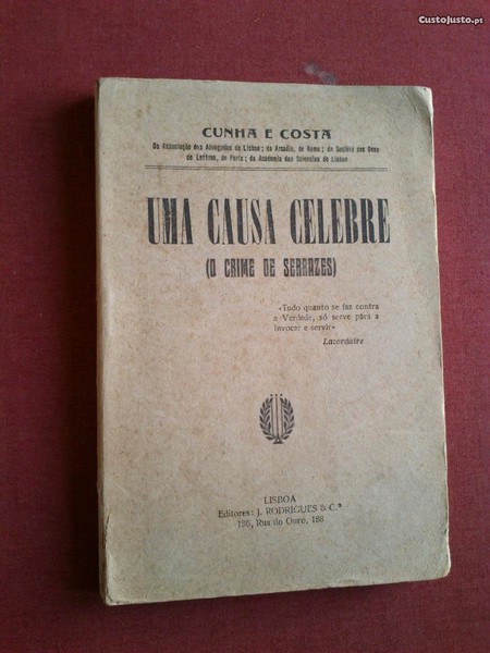 Cunha e Costa-Uma Causa Célebre (O Crime de Serrazes)-Editores:J. Rodrigues & C.ª-Lisboa-s/d (1922?)