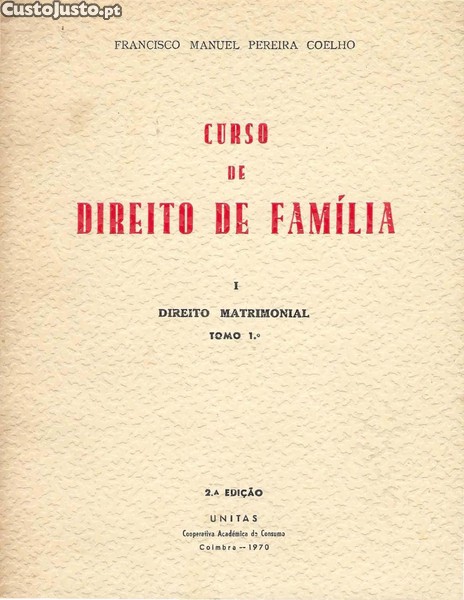 Preço: 70 €Curso de Direito de Família - I - Direito Matrimonial - Tomos 1º e 2º