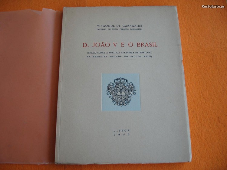 Trabalho do Visconde de Carnaxide, António de Sousa Pedroso Carnaxide, sobre a figura de D. João V e o Brasil: ensaio sobre a política Atlântica de Portugal, na primeira metade do século XVIII.