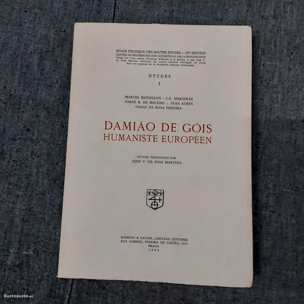 École Pratique des Hautes Études-IVe Section-Centre de Recherches Sur Le Portugal De La Renaissance (Dirigé par Jean Aubin,Directeur D'Études à la Section et par José V. De Pina Martins,Professeur à L'Université Classique de Lisbonne Sous Les Auspices de la Fondation Calouste Gulbenkian)-Études-I-Marcel Bataillon;J.-C. Margolin;Jorge B. de Macedo;Jean Aubin;Isaías da Rosa Pereira-Damião de Góis:Humaniste Européen-Barbosa & Xavier,Limitada,Editores-Braga-1982