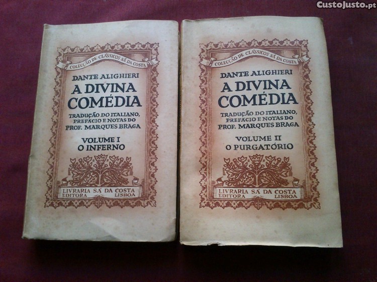 Colecção de Clássicos Sá da Costa-Dante Alighieri-A Divina Comédia-Tradução do Italiano,Prefácio e Notas do Prof. Marques Braga-Volume I:O Inferno/Volume II:O Purgatório-Livraria Sá da Costa,Editora-Lisboa-1955