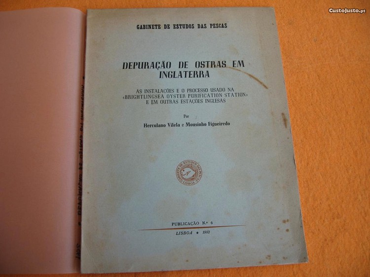 Trabalho de Herculano Vilela e Mousinho Figueiredo sobre a técnica de depuração de Ostras, na Inglaterra.