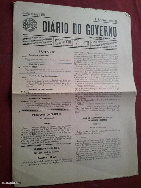 Diário do Governo-I Série,Número 93-3 Maio 1958