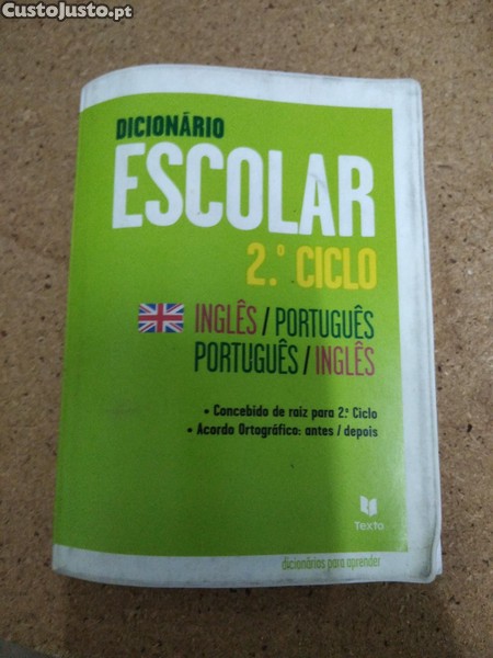 Preço: 4 €Dicionário escolar 2ºciclo com tradução de Inglês para Português e de Português para Inglês