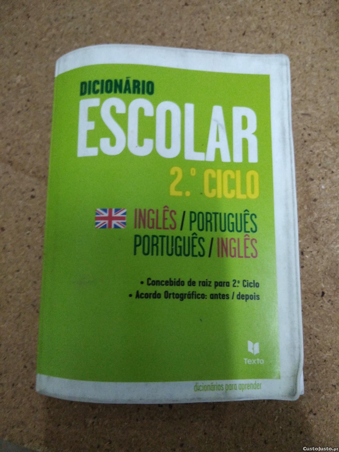 Dicionário escolar 2ºciclo com tradução de Inglês para Português e de Português para Inglês.